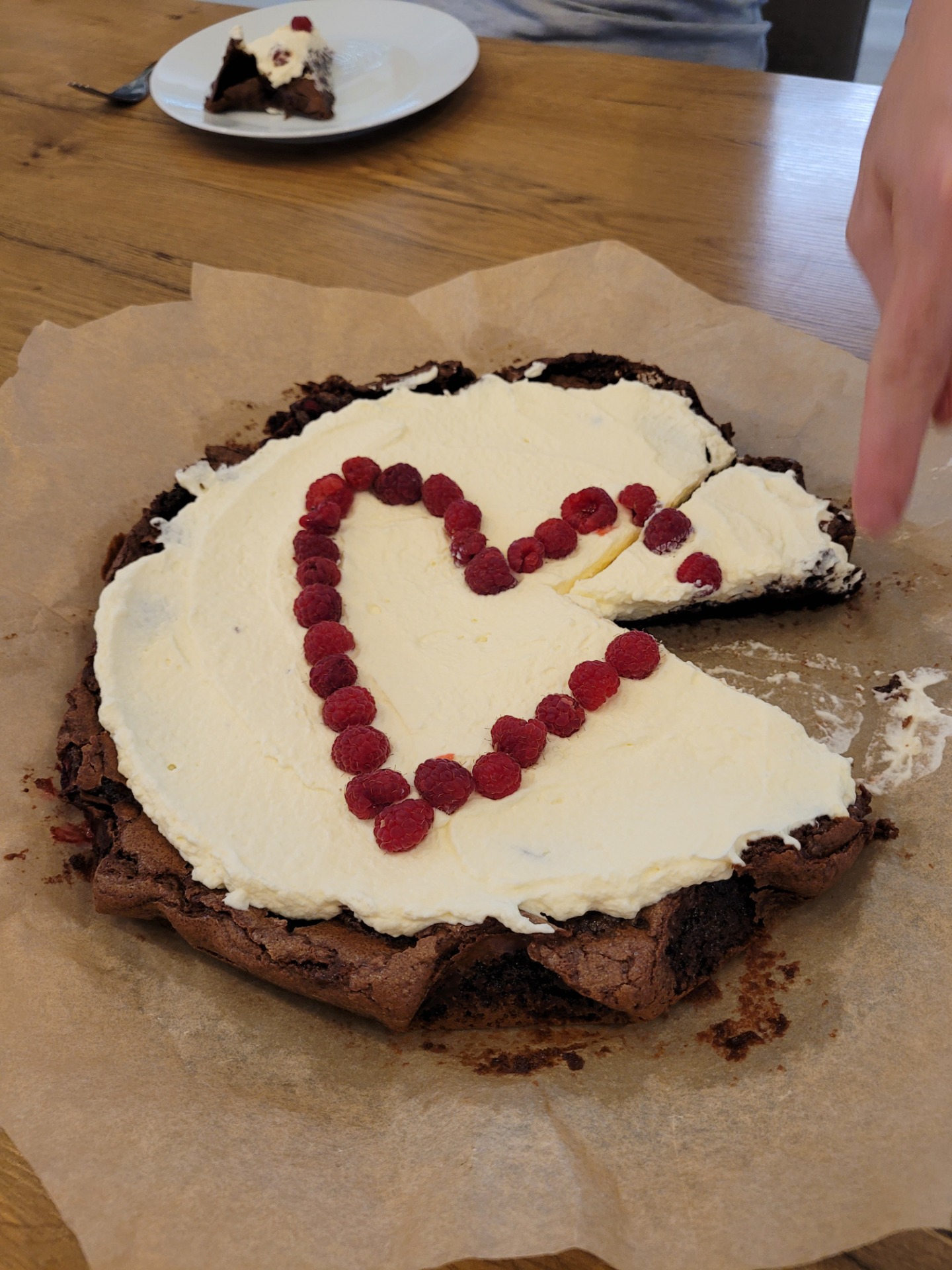 Leivottiin mun hostsiskon kanssa (itseasiassa pariki kertaa tällä viikolla) vadelmamutakakku, ja mun hostperhe tykkäs tosi paljon. Olin yllättyny et ne ei oikeen tienny mikä on mutakakku eikä ollu aiemmin maistanu, mut olin ilonen ku ne sano et oli hyvää.